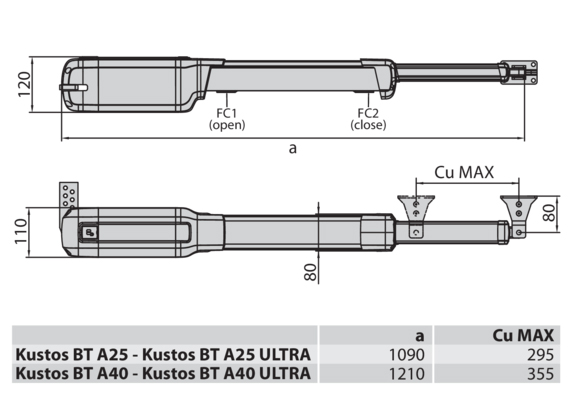 بی اف تی A25 با توان بالاتر و شاید دو برابری نسبت به مدل قبلی خود Phobos عرضه شده است، BFT A25 جکی الکترومکانیک و 24 ولت است که مخصوص درب های لولایی تا طول 5 متر و وزن 800 کیلوگرم طراحی شده است.